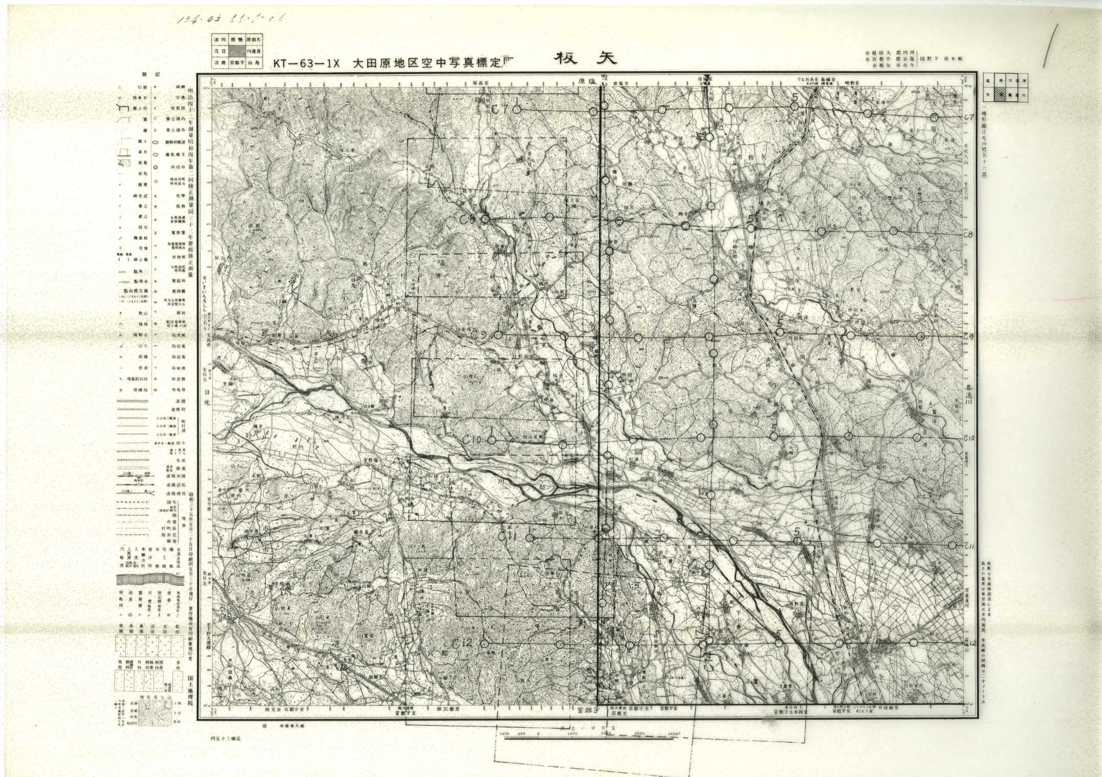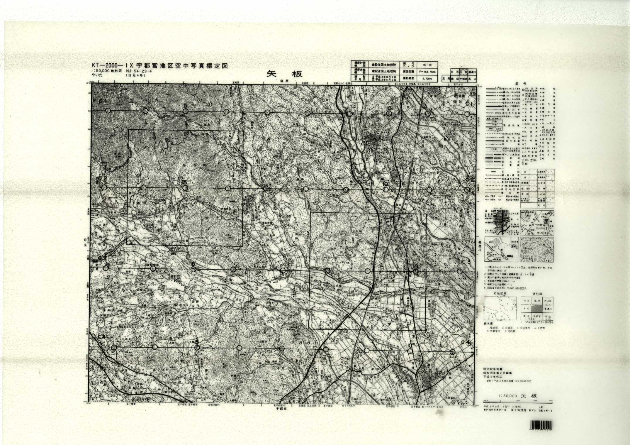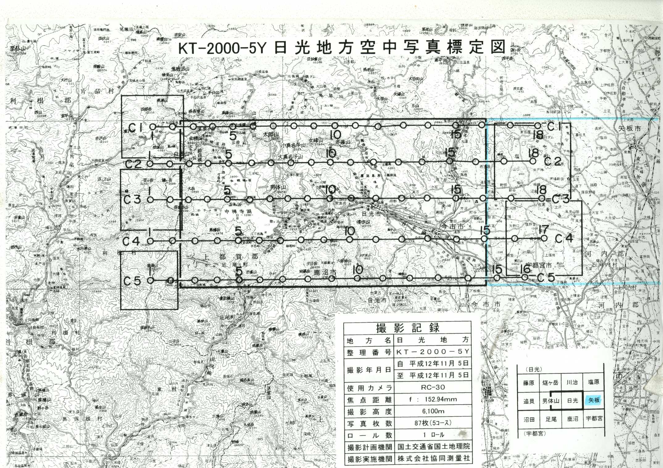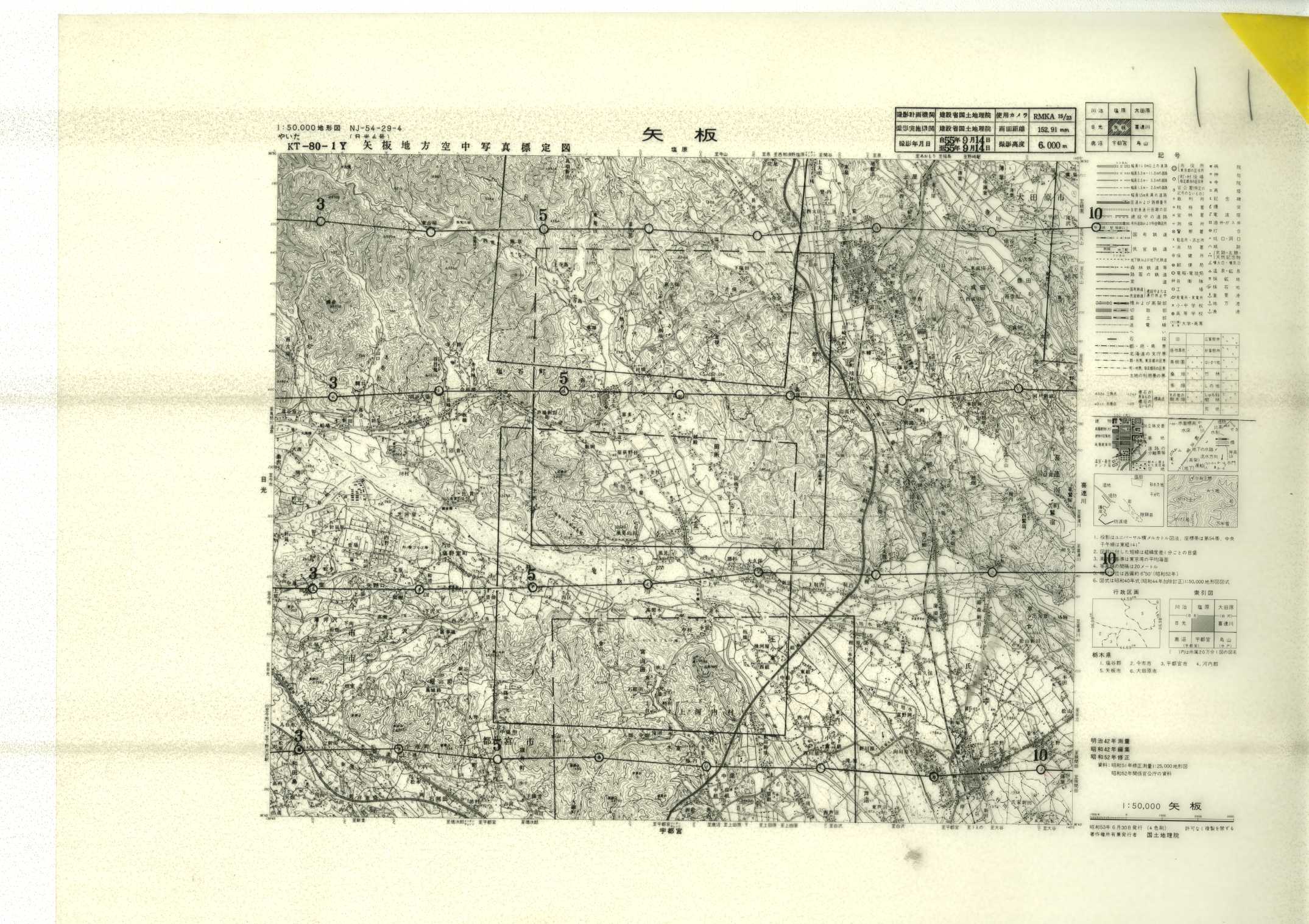 以下は、この5万分1地形図に含まれる標定図のすべてであり、原則として、年代の古いものから順に並んでいます。