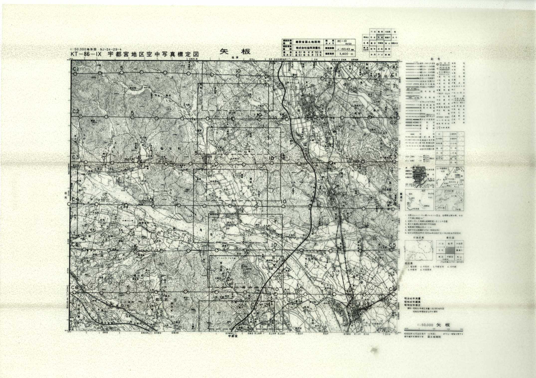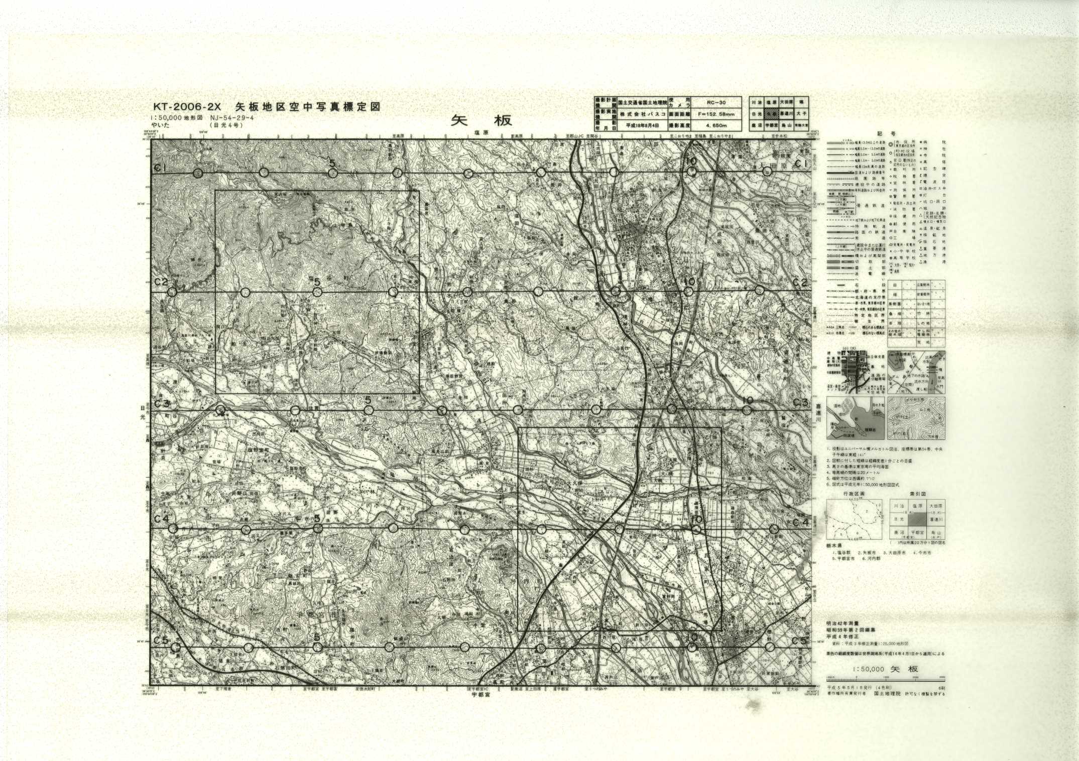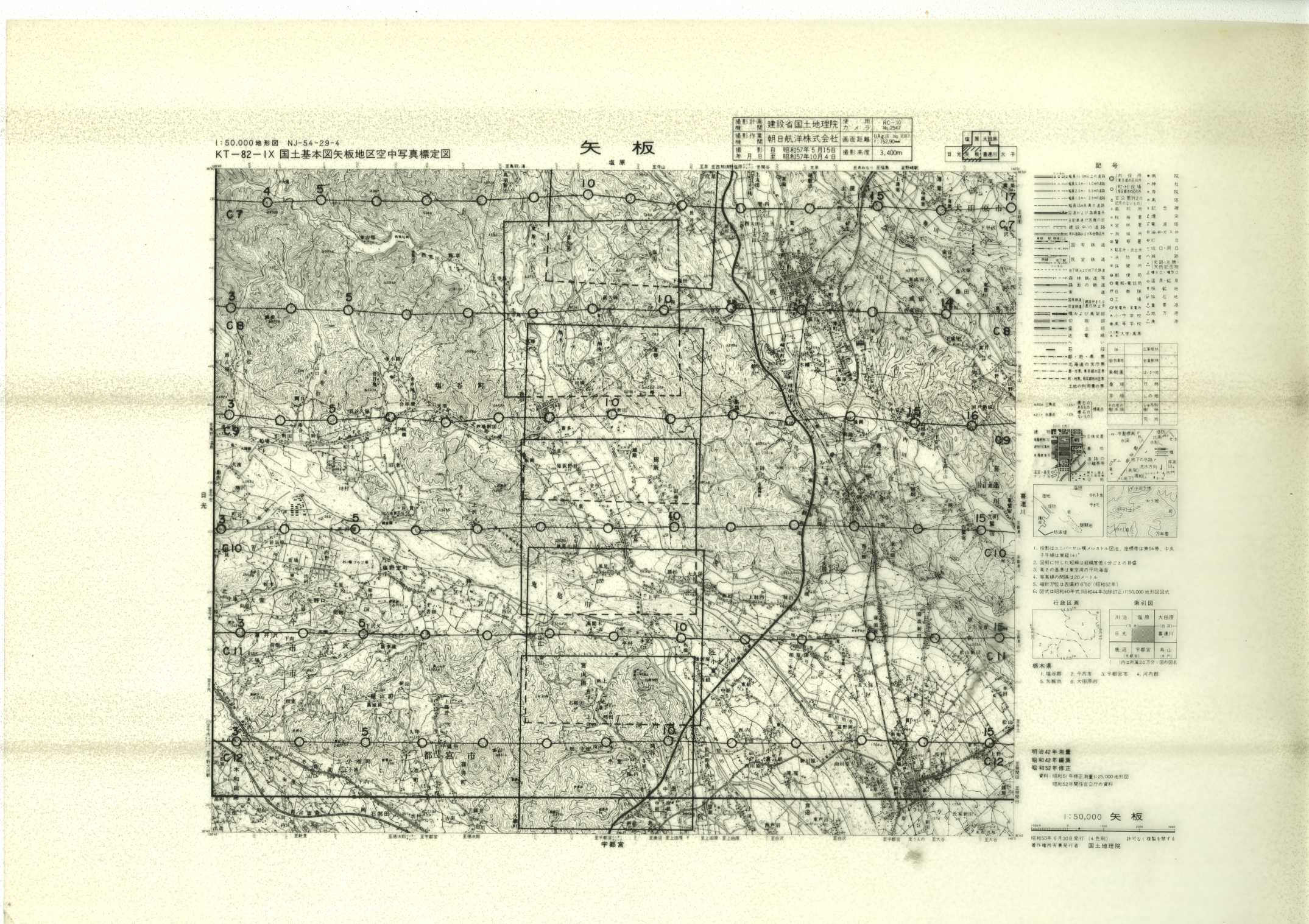 以下は、この5万分1地形図に含まれる標定図のすべてであり、原則として、年代の古いものから順に並んでいます。
