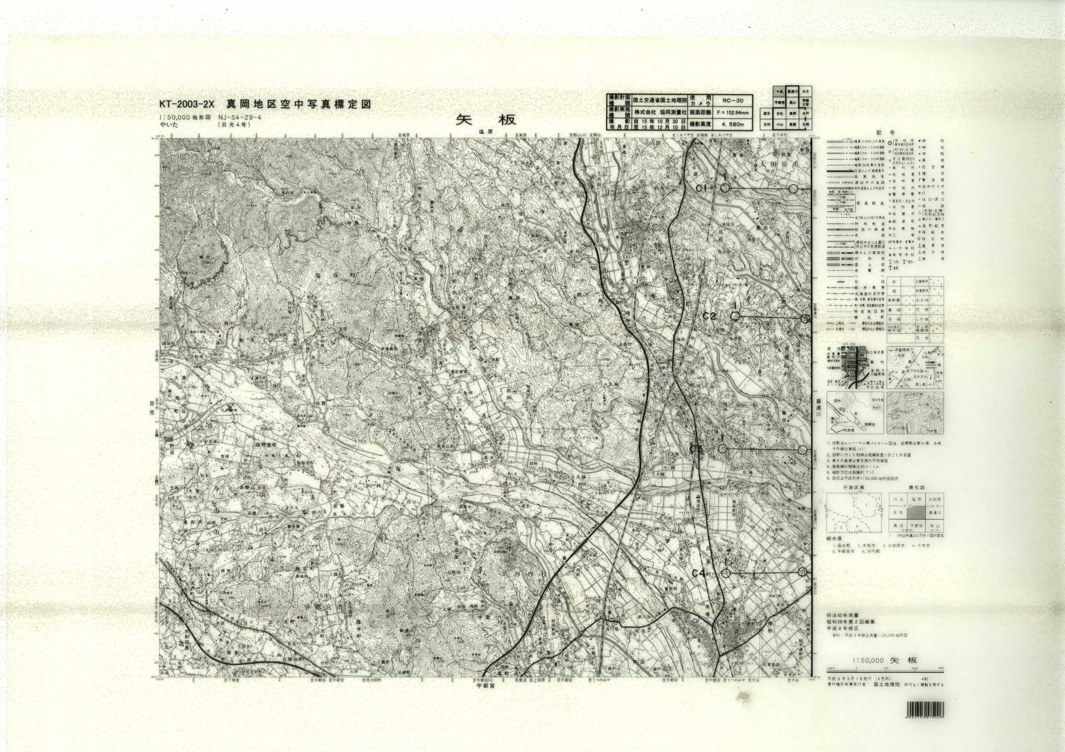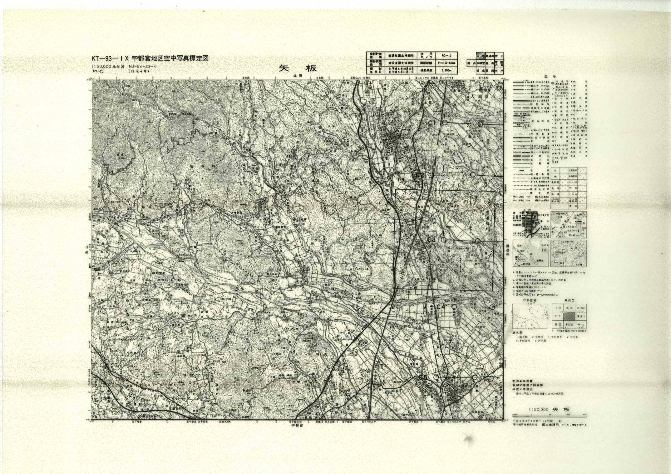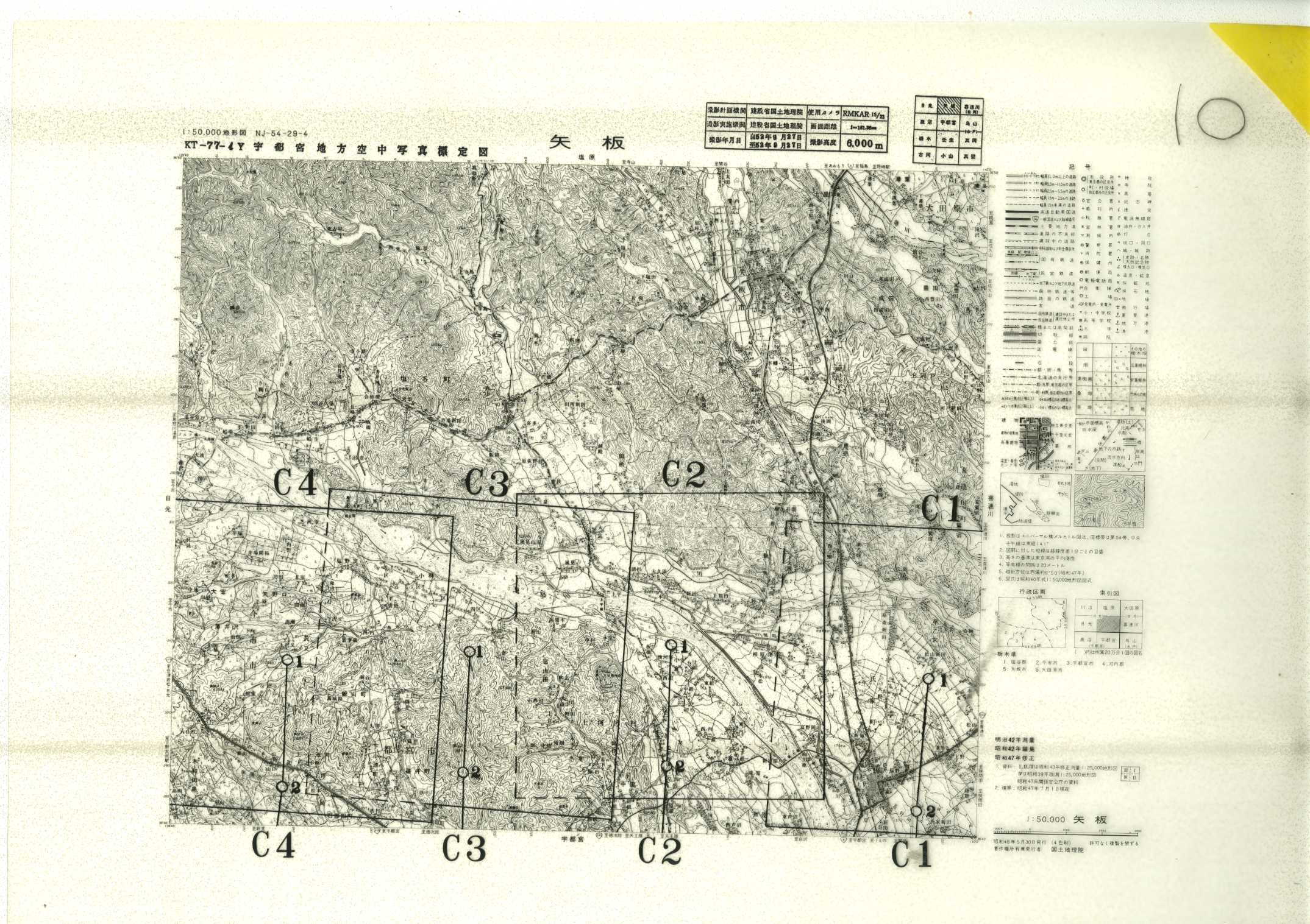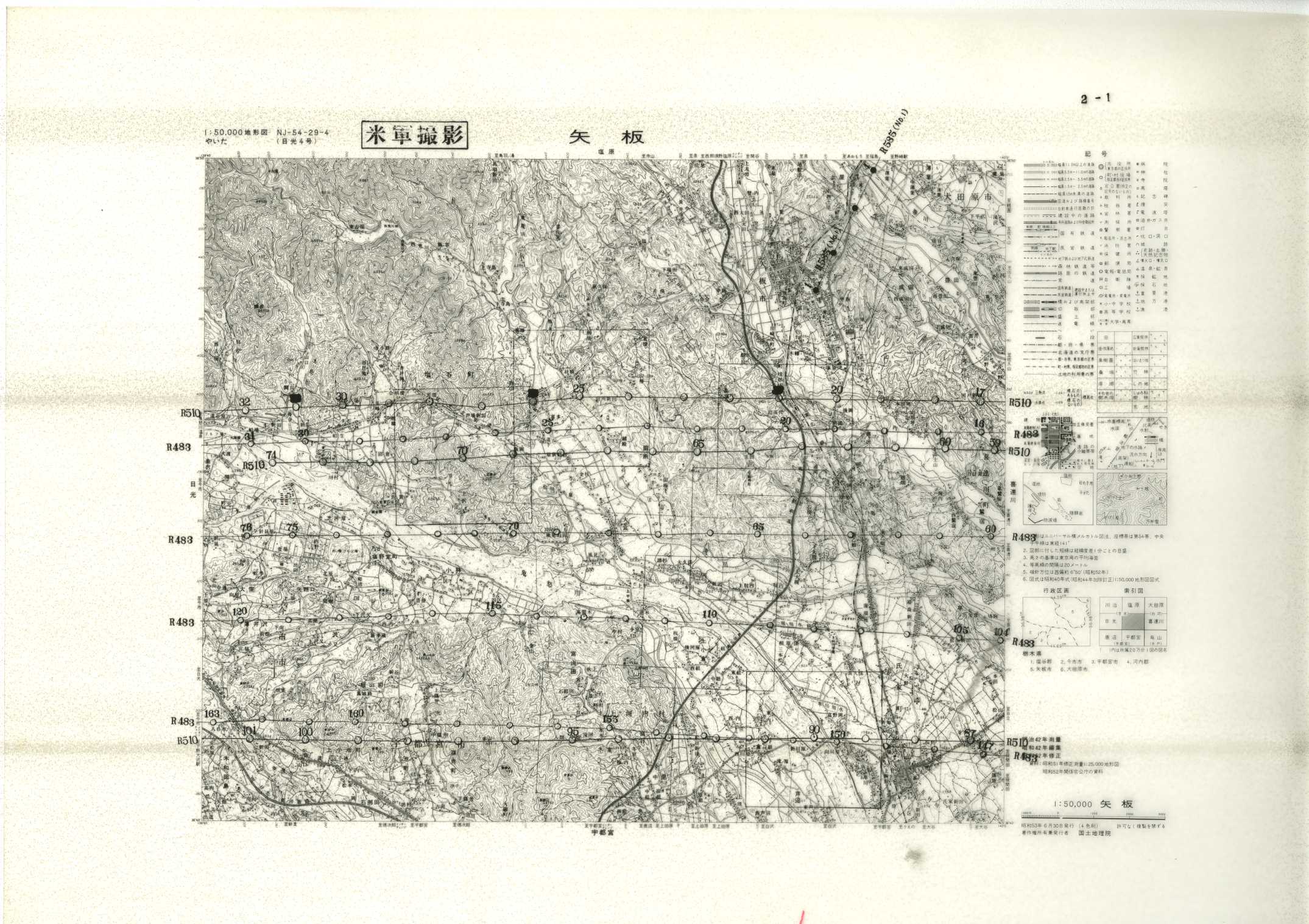 以下は、この5万分1地形図に含まれる標定図のすべてであり、原則として、年代の古いものから順に並んでいます。